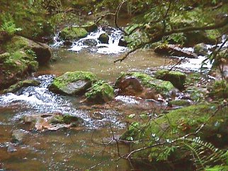 While gaining elevation, the trail has left Waddell Creek in the canyon below. This does not mean that its presence is not still felt. The joyful sound of it as it tumbles down to the sea is constantly present. In addition, breaks in the vegetation allow glimpses to be had as it frolics along its streambed. Be ready to take advantage when such opportunities are available. Here the creek rejoices in its freedom.